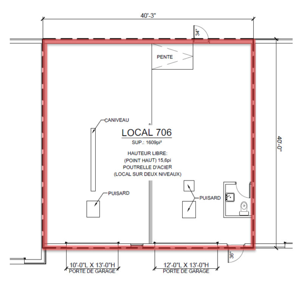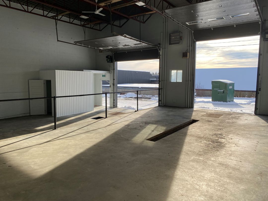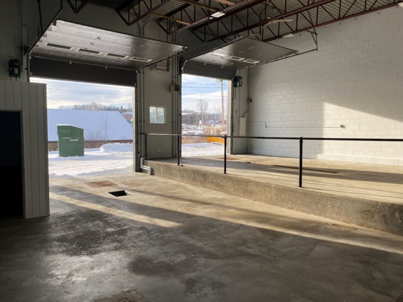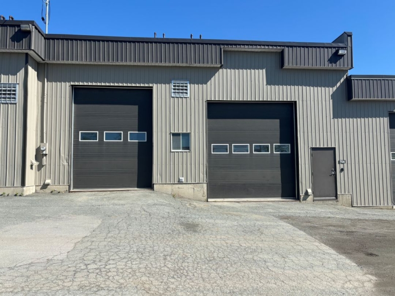 Caractéristiques : Hauteur libre de 15 pieds, 2 portes de garage de 10×13 pieds et 12X13 pieds, 1 porte indépendante en acier de 36po, toilette avec tub.